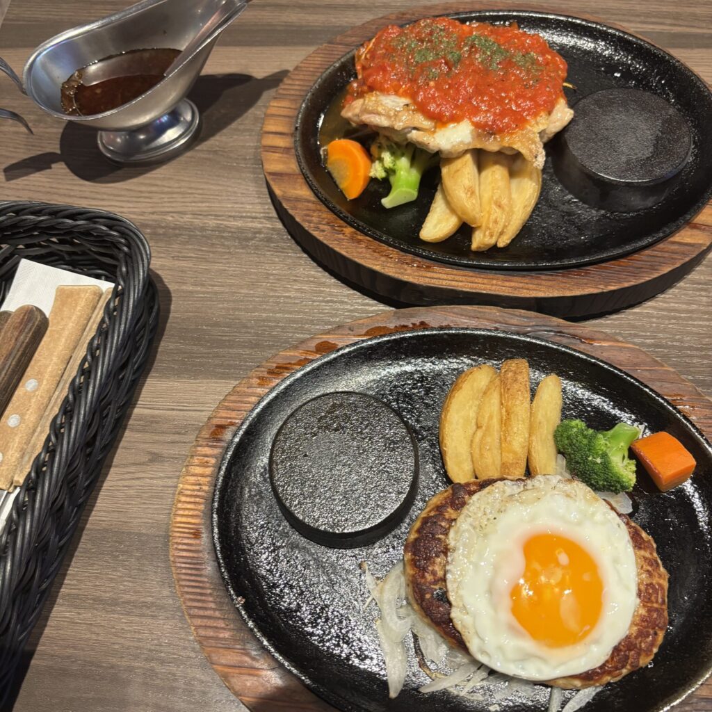 チーズトマトチキン(1,738円)とエッグハンバーグ(1,628円)を食べました
