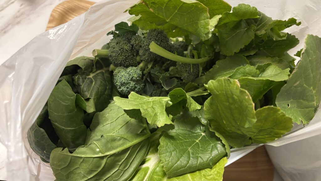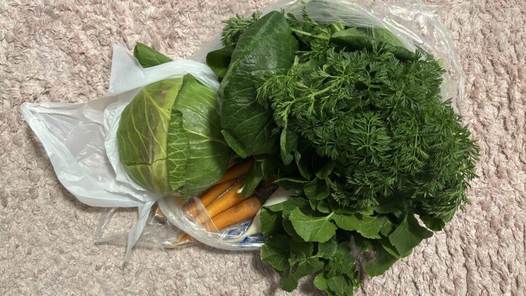 たくさんもらえた野菜、買ってもらった揚げ物はほとんど冷凍しました