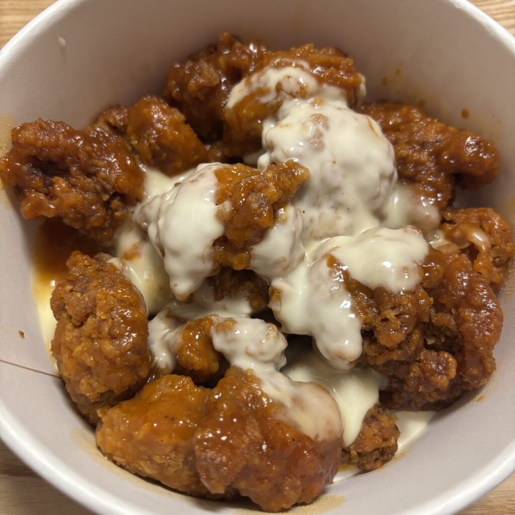 2人:味覇スープ、ヤンニョムチキン(韓国のコンビニで購入)