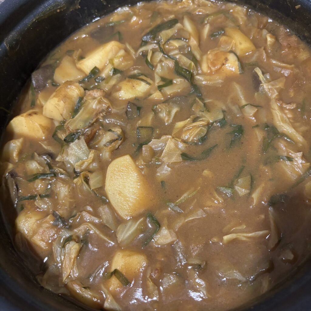 牛すじ、キャベツ、なす、にら、じゃがいも、玉ねぎ、うどん2玉