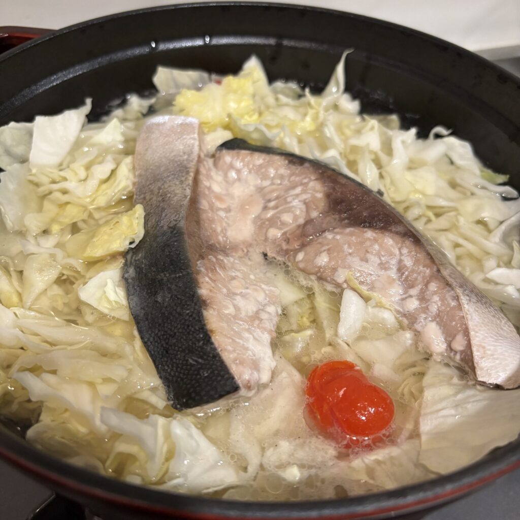 ぶり、キャベツ、こんにゃく、ミニトマト