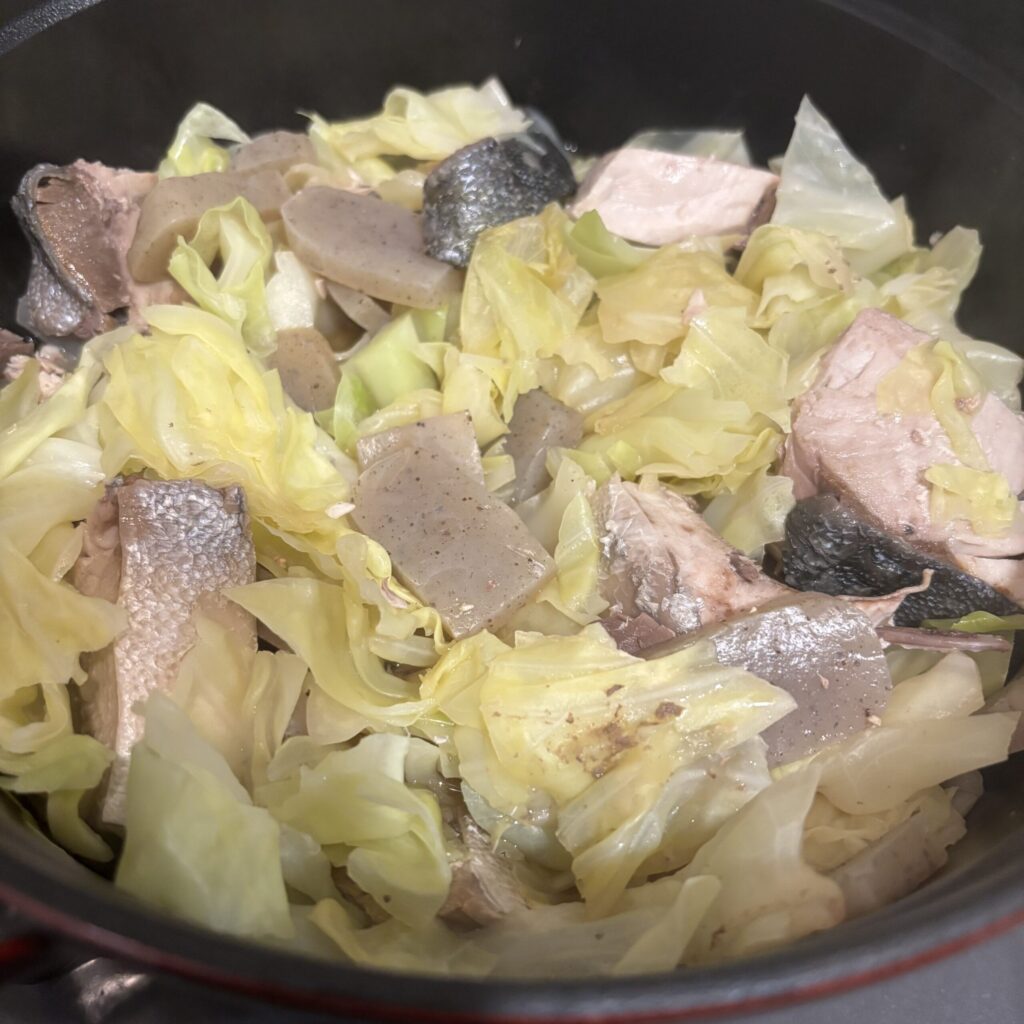 ぶり、キャベツ、こんにゃく、お麩