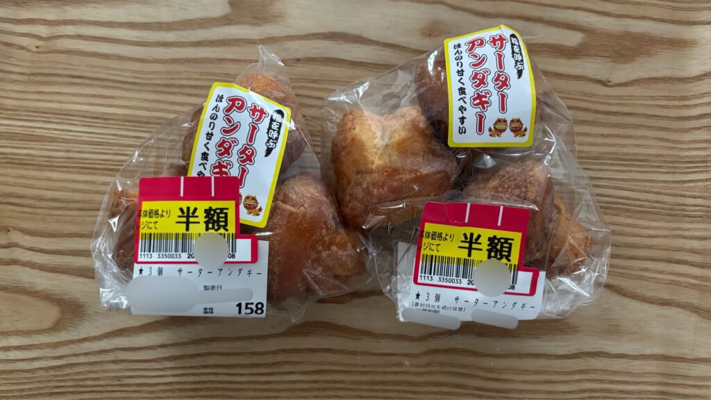 サーターアンダギーは大好きすぎて、半額で2袋買っちゃいました