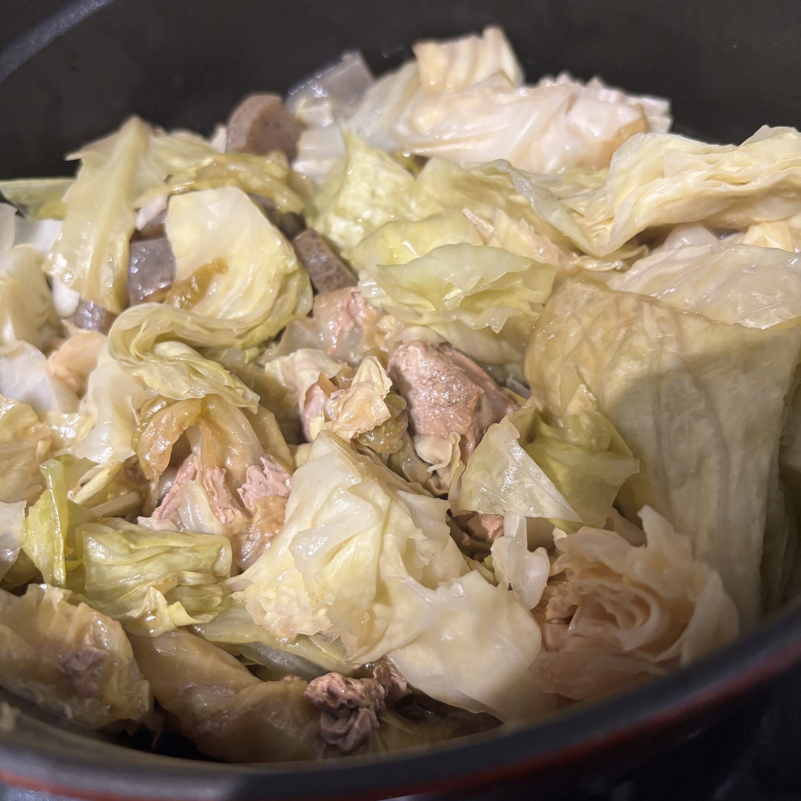 ぶり、白菜、大根を醤油、料理酒、みりんで味付けをして蒸しました