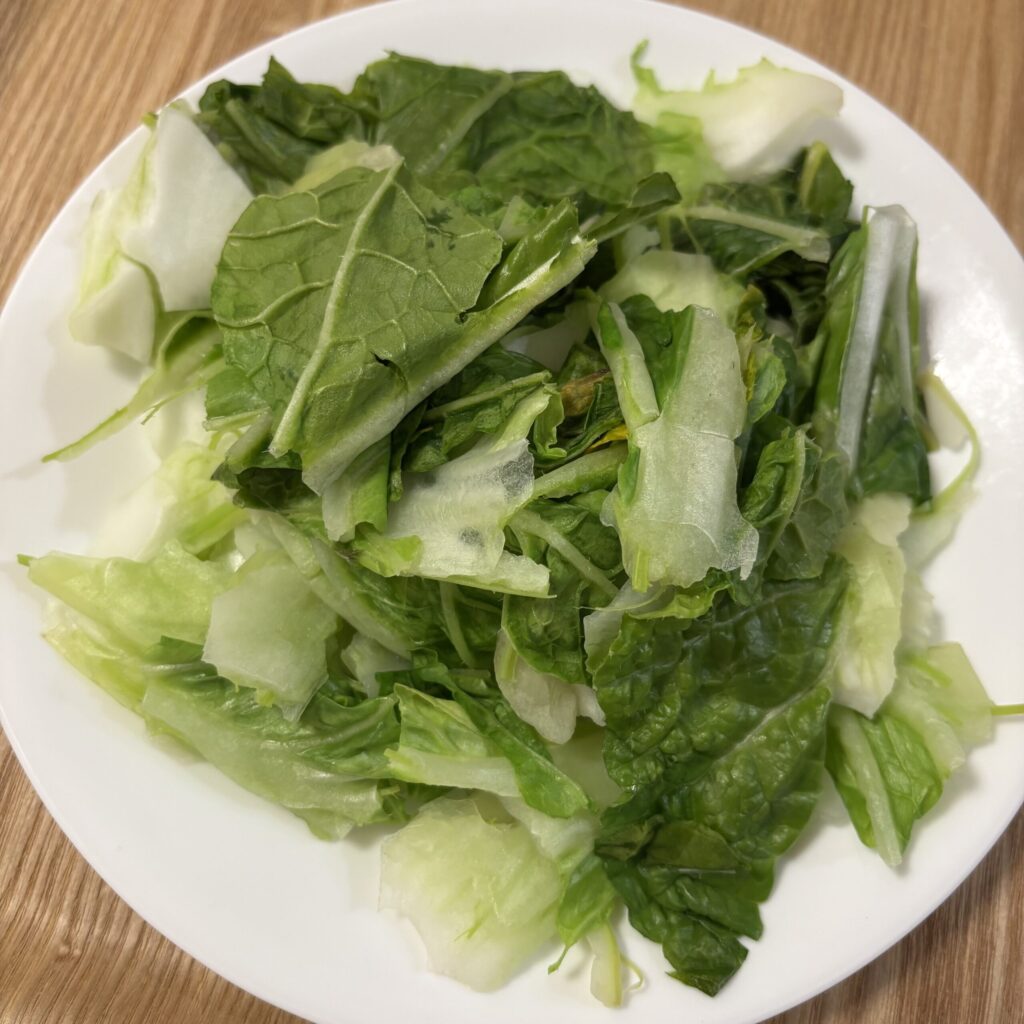 2人:蒸した白菜、まぜそば全部、食パン1枚、ミルフィーユ4個、シュークリーム2個