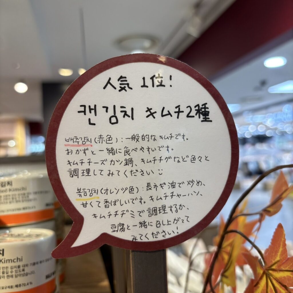 2つのキムチの違いは、店頭に日本語で書いてありました