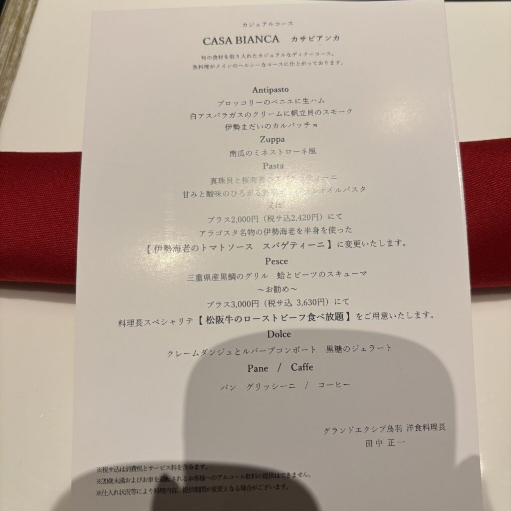今回このコースにした理由は選べるコースの中で1番安かったからと、イタリアンが好きなので気になったからです